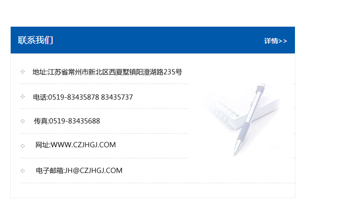 傳真:0519-83435688    郵編:213135    網址:WWW.czjhgj_com.bjmybanjia.com    電子郵箱:JH@czjhgj_com.bjmybanjia.com